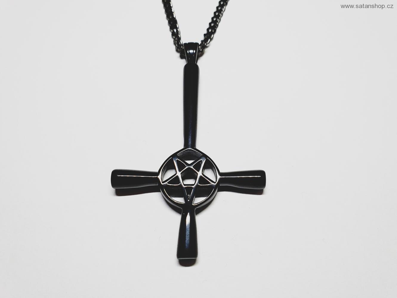 NÁHRDELNÍK - OBRÁCENÝ KŘÍŽ - PENTAGRAM - VELKÝ - 316L