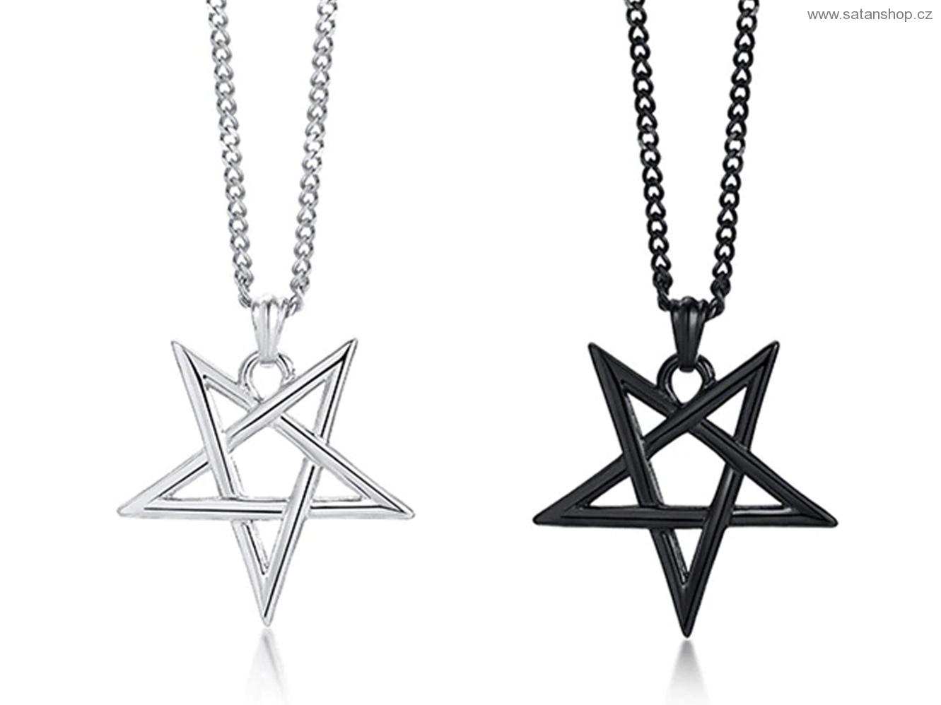 Náhrdelník - Pentagram Occult - 316L Materiál: 316L - Stainless Steel - amulet i řetízek.Provedení: Amulet zavěšený na řetízku z tvarovaných oček.Barva: stříbrná a černá, řetízek i amulet.Náhrdelník vyrobený z trvanlivé chirurgické oceli, černá varianta je tvrdě opláštěna proti případnému oděru. Vh... celý popis