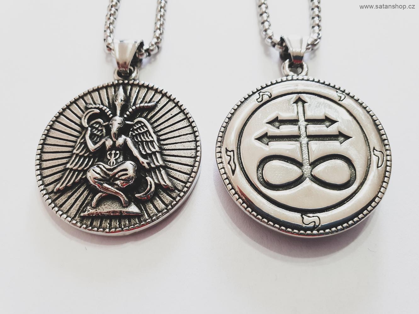 Tento skvost v naší nabídce z chirurgické oceli, se stane Vašim nezničitelným společníkem. Velmi pěkné zpracování a spojení klasického symbolu Sabbatic Baphometu a okultního Leviathan Cross, který je na zadní straně amuletu. Vhodný pro ochranu i protest v té nejvyšší kvalitě zpracování. Přívěsek je zabalen do dárkového sáčku z organzy. Určitě potěší, jako luxusní dárek. Doporučujeme.