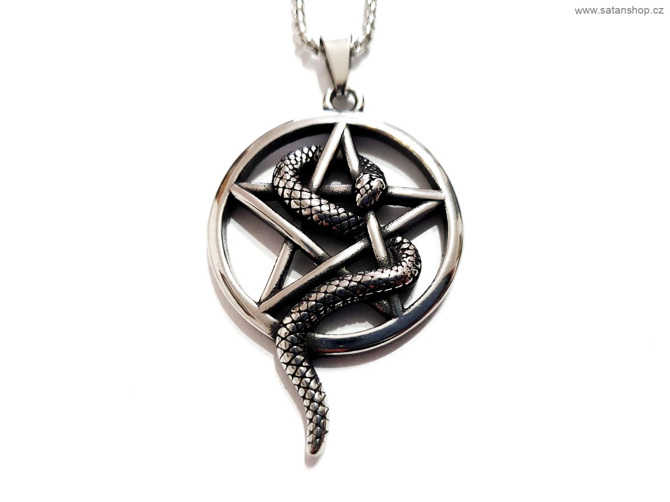 Tento nádherný okultní symbol z chirurgické oceli, se stane Vašim nezničitelným společníkem. Detailní a pevné zpracování klasického symbolu bílého pentagramu s hadem pro vaši ochranu v té nejvyšší kvalitě.