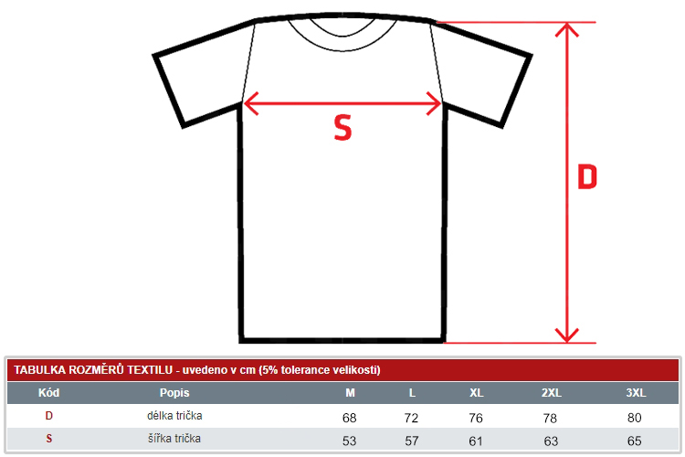 Grafika potisku: přední strana malý, zadní strana velký, potisk rukávů.