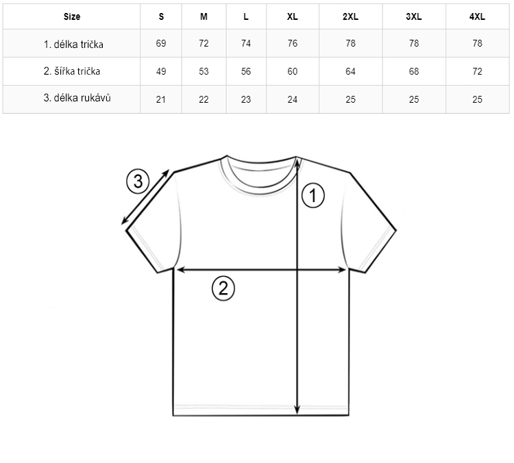 Tabulka rozměrů jednotlivých velikostí: